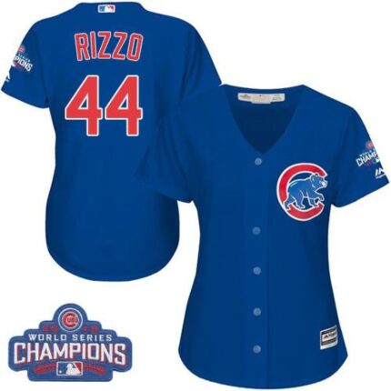 Cubs #44 Anthony Rizzo Blue Alternate 2016 World Series Champions Women’s Stitched MLB Jersey