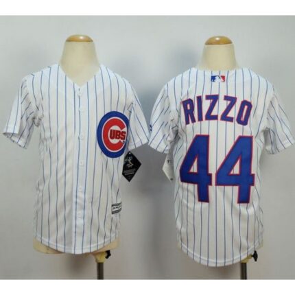 Cubs #44 Anthony Rizzo White(Blue Strip) Cool Base Stitched Youth MLB Jersey