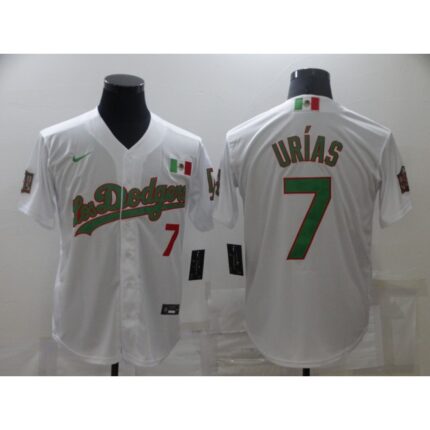 Men’s Los Angeles Dodgers White #7 Julio Urias White Green Mexico 2020 World Series Stitched Jersey
