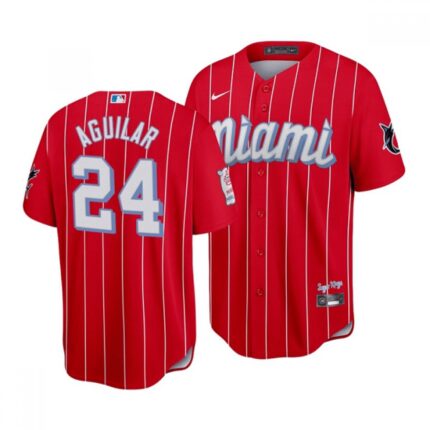 Men’s Miami Marlins #24 Jesus Aguilar 2021 Red City Connect Cool Base Stitched Jersey