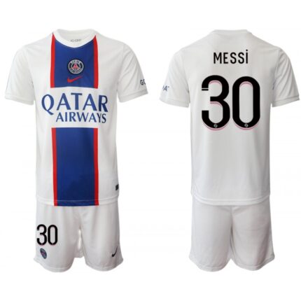Men’s Paris Saint-Germain #30 Lionel Messi 2023 White Away Soccer Jersey Suit