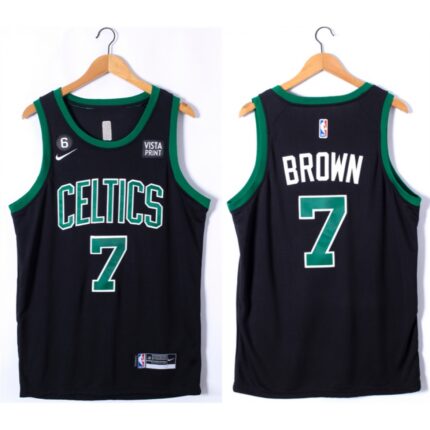Men’s Boston Celtics #7 Jaylen Brown Black No.6 Patch Stitched Basketball Jersey