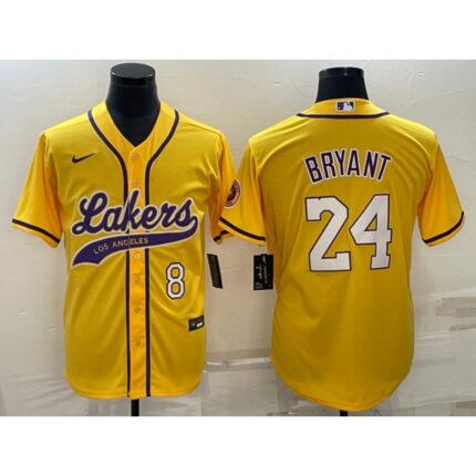 Men’s Los Angeles Lakers Front #8 Back #24 Kobe Bryant Yellow Stitched Baseball Jersey