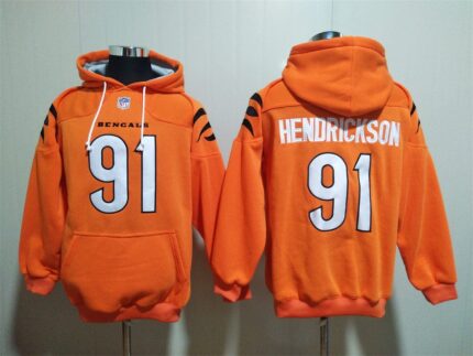 Cincinnati Bengals Orange Hoodie #91 HENDRICKSON (With Pockets)