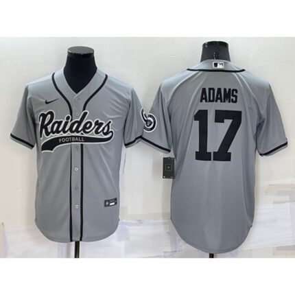 Men’s Las Vegas Raiders #17 Davante Adams Grey With Patch Cool Base Stitched Baseball Jersey