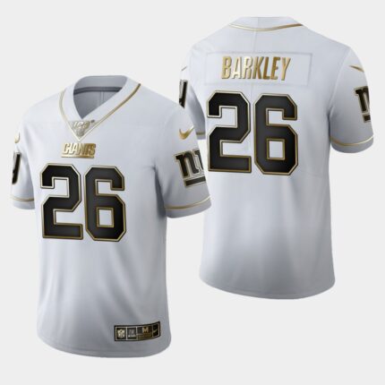 Men’s New York Giants #26 Saquon Barkley White 2019 100th Season Golden Edition Limited Stitched NFL Jersey