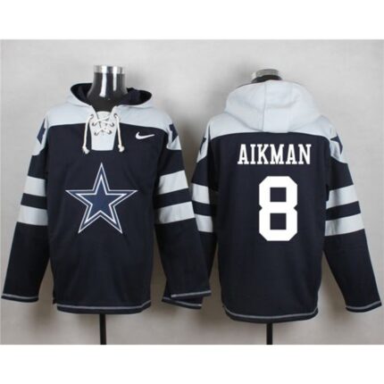 Nike Cowboys #8 Troy Aikman Navy Blue Player Pullover NFL Hoodie