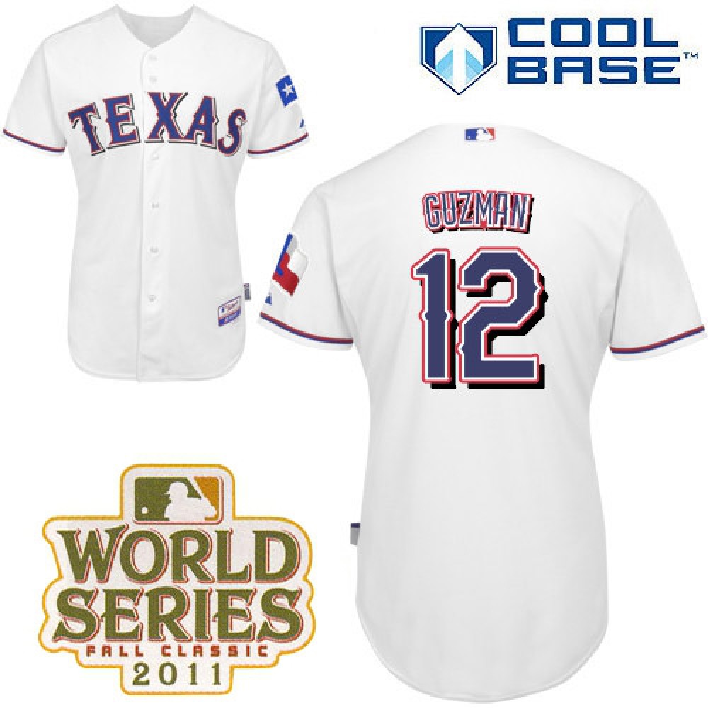 Home MLB Jerseys Texas Rangers Rangers #12 Cristian Guzman White Cool Base 2011 World Series Patch Stitched MLB Jersey